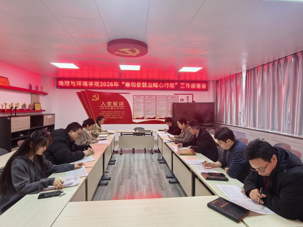 为落实学校关于开展2026届毕业生“寒假促就业暖心行动”的工作部署,1月9日下午,地理与环境学院在明理楼202会议室召开专题工作会,会议由学院党委副书记赵凡主持。